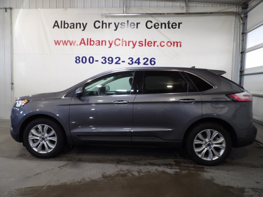 You can find this 2022 Ford Edge Titanium and many others like it at Albany Chrysler Center, Inc.. The Ford Edge Titanium offers a fair amount of utility thanks to its advanced features and unique styling. It's also quite sporty, and injects an ample amount of handling chutzpah into the ridin'-high body of a family-friendly SUV. Quality and prestige abound with this Ford Edge Titanium. Hit the gas pedal and put the engine power to all four wheels. With AWD, you'll have the greater performance right off the line, every time you drive. Intricately stitched leather and ergonomic design seats are among the details in which test drivers say that Ford Edge Titanium is in a league of its own